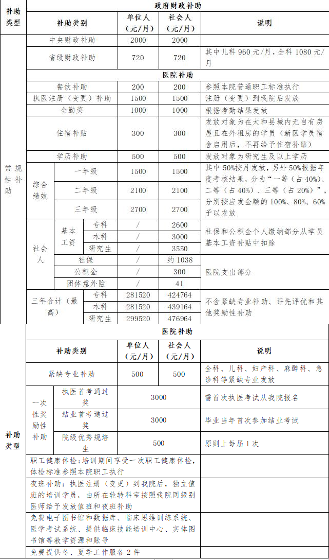 (三)助理全科医生培训学员待遇